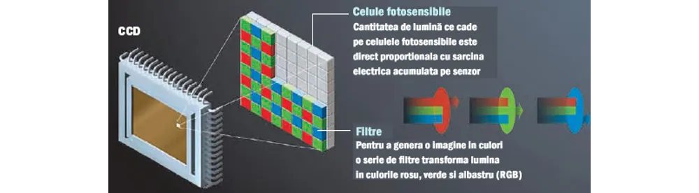 Senzorul de imagine realizează transformarea imaginii într-un semnal electric, care apoi este transformat într-un semnal digital, prin intermediul căruia informaţia este înmagazinată pe un mediu de stocare (card de memorie).