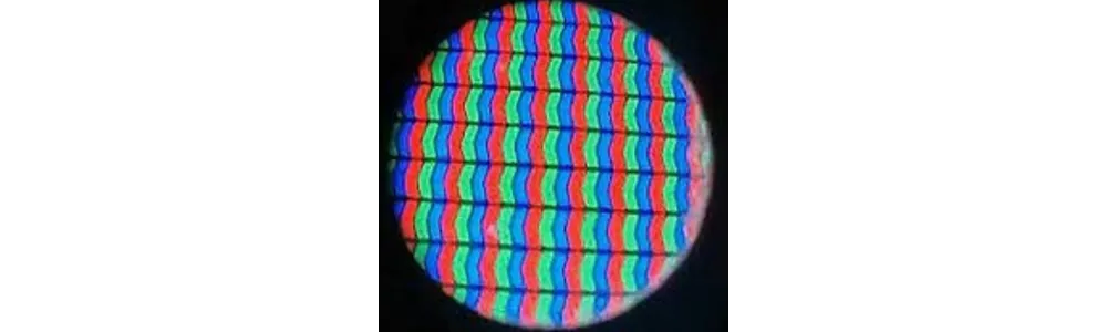 Dacă mărim foarte mult o imagine, vom observa pixelii colorați în cele trei culori primare din optică (roșu, verde și albastru).