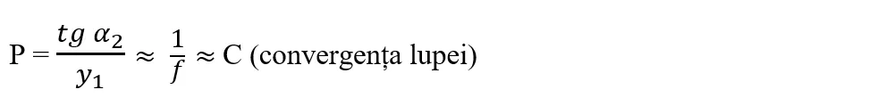 Deoarece obiectul este foarte aproape de focar, tg α2 ≈ y1/f.