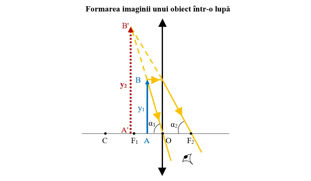 α2 = unghiul sub care se vede obiectul prin lupă y1 = dimensiunea obiectului